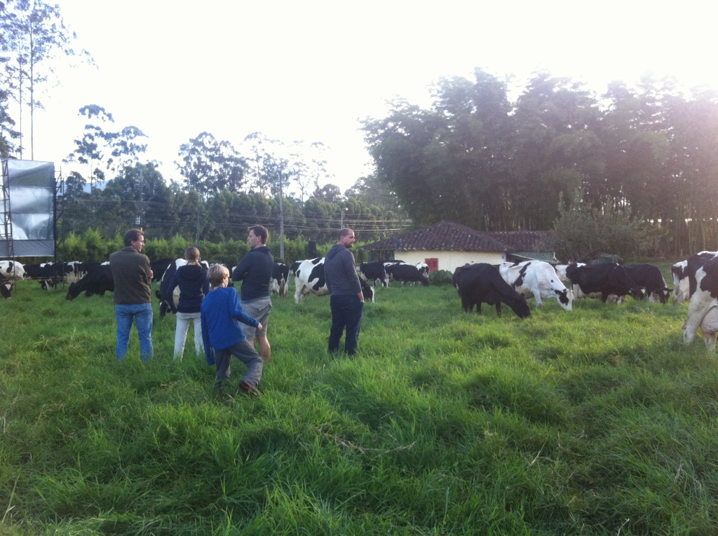 We spent last weekend in luxury at a dairy farm. Our host, Andres, grew up in Colombia and then was in Eric’s fraternity at Brown, an experience which quite possibly defines “culture shock.” His grandfather started the farm 80-odd years ago, when it covered half of a valley east of Medellin, and then divided it among his eight children, one of whom later was kidnapped for ransom and held for four months in the jungle within sight of his home. He insisted that his captors let him shave every day, and came home transformed from the family curmudgeon to a new man. The nonchalant delivery of stories like these — avoiding police checkpoints in Bogata after a bombing because an Envigado ID meant going straight to jail, gunshots outside the bedroom which ended up amusing because the security guard was shooting a rogue armadillo — continues to surprise me. We are the first classmates of Andres to visit him in Colombia.