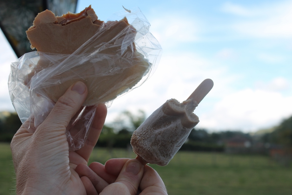 We ate well, stopping at all of Andres’ favorite places on the drive: for the ingredients for ajiaco [a traditional Bogota soup], for smoked trout sandwiches (easily a Yelp-five-star restaurant, except in someone’s beautiful country home), for chicharrones [thick-cut, deep-fried bacon, if you can believe anything so delicious exists] and empanadas, and for obleas, an addictive traditional snack/dessert made of 6-inch-diameter communion wafers with arequipes [caramel sauce, but better] between them. The dessert place, beside their $1 wafer-snacks, sells $0.50 popsicles; mine, arequipe-flavored, easily topped those artisanal popsicles we travel across town for in San Diego. And then appetizers and wine and lasagne and… oh, it really was such a lovely time.