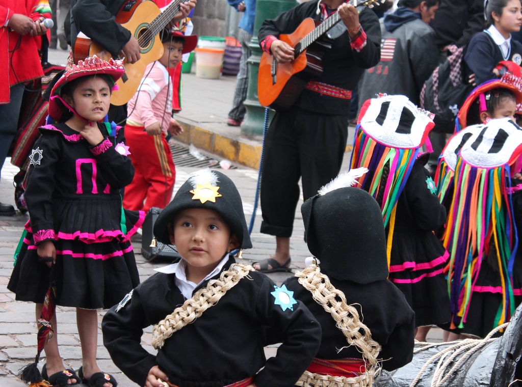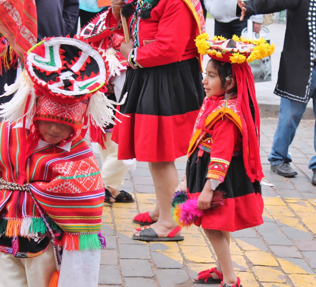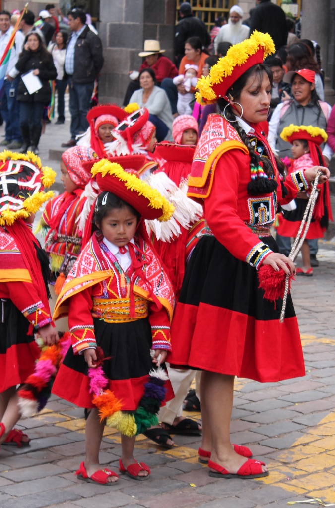 In Cusco, the entire month of June is apparently a festival. There have been parades in the Plaza de Armas in the city center every day (so far), each day featuring brightly costumed dancers of various ages. Here are the littlest ones on parade, because, well, we couldn’t help ourselves:
