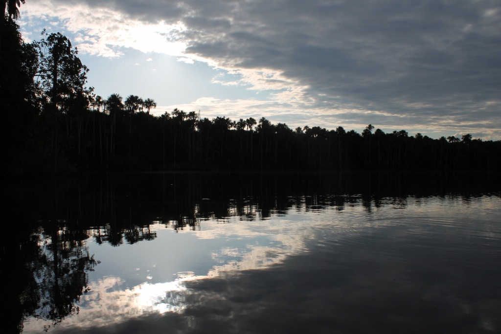 We are on Lago Sandoval, an oxbow lake off of the Madre de Dios! river in eastern Peru. The closest town is Puerto Maldonado, which is poor in the way that you might expect in a remote Amazonian town, all cinder blocks and rusted corrugated metal and unpaved roads crowded with three-wheeled moto-taxis like the tuk-tuks in Thailand. The river joins other rivers to form the actual Amazon a few hundred miles north at the Ecuadorean border, and of course it is not actually spelled with an exclamation point. That’s my addition, because it sounds like such a swear word/exclamation: Madre de Dios, it’s hot out! Madre de Dios, that caiman was huge!